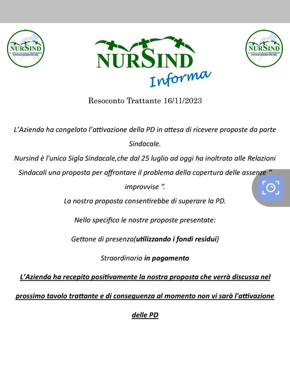 Questa mattina Nursind ha partecipato alla manifestazione di protesta contro il progetto speri-mentale della Pronta Disponibilità che l’Asl Romagna vuole portare avanti per sopperire alle as-senze improvvise durante i turni notturni e i festivi. L’istituto della pronta disponibilità non pre-vede questo utilizzo e il progetto che stanno portando avanti mette a rischio la sicurezza degli operatori sanitari, dei pazienti e va ad abbassare la qualità assistenziale perché prevede che l’in-fermiere che smonta da notte possa essere richiamato per coprire una seconda notte in un qual-siasi reparto dell’ospedale senza conoscere l’organizzazione di quel determinato reparto o la ti-pologia di paziente che deve assistere e questo, nonostante la competenza o esperienza dell’infer-miere, va a discapito del pz e degli altri operatori sanitari presenti.Inoltre non viene previsto nes-sun riconoscimento economico per i rientri nei giorni diurni feriali. Nursind ha depositato una proposta dove si chiede un riconoscimento economico, gettone di presenza per il disagio, utiliz-zando i fondi residui, ed il pagamento dello straordinario per la copertura dell’assenza improvvi-sa per il quale l’infermiere viene richiamato in servizio facendo però la prestazione nel proprio reparto di appartenenza e non in un qualsiasi reparto. Nursind ritiene che gli attuali organici in-tegrativi non siano adeguati alle esigenze organizzative delle unità operative perché non tengono conto dei vari permessi, congedi parentali, legge 104, ed altri istituti previsti dal CCNL come gli articoli 51 e 54 e altri. Si ritiene inoltre doveroso l’istituzione della banca delle ore come previsto da l Contratto Nazionale.